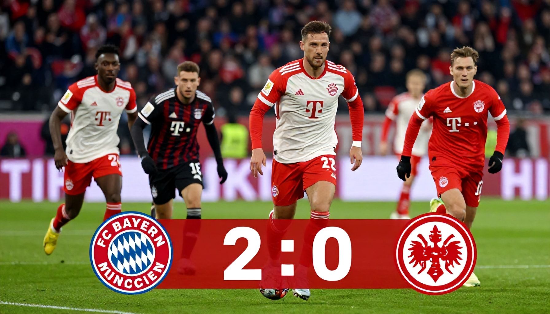 Bayern München festigt seine Tabellenführung mit einem überzeugenden 2:0-Sieg gegen Eintracht Frankfurt. Die Münchner demonstrierten erneut ihre Dominanz in der Bundesliga und bauen ihren Vorsprung auf die Verfolger aus. Mit diesem Sieg festigen sie ihre Position an der Spitze und zeigen, dass sie in dieser Saison schwer zu schlagen sind.