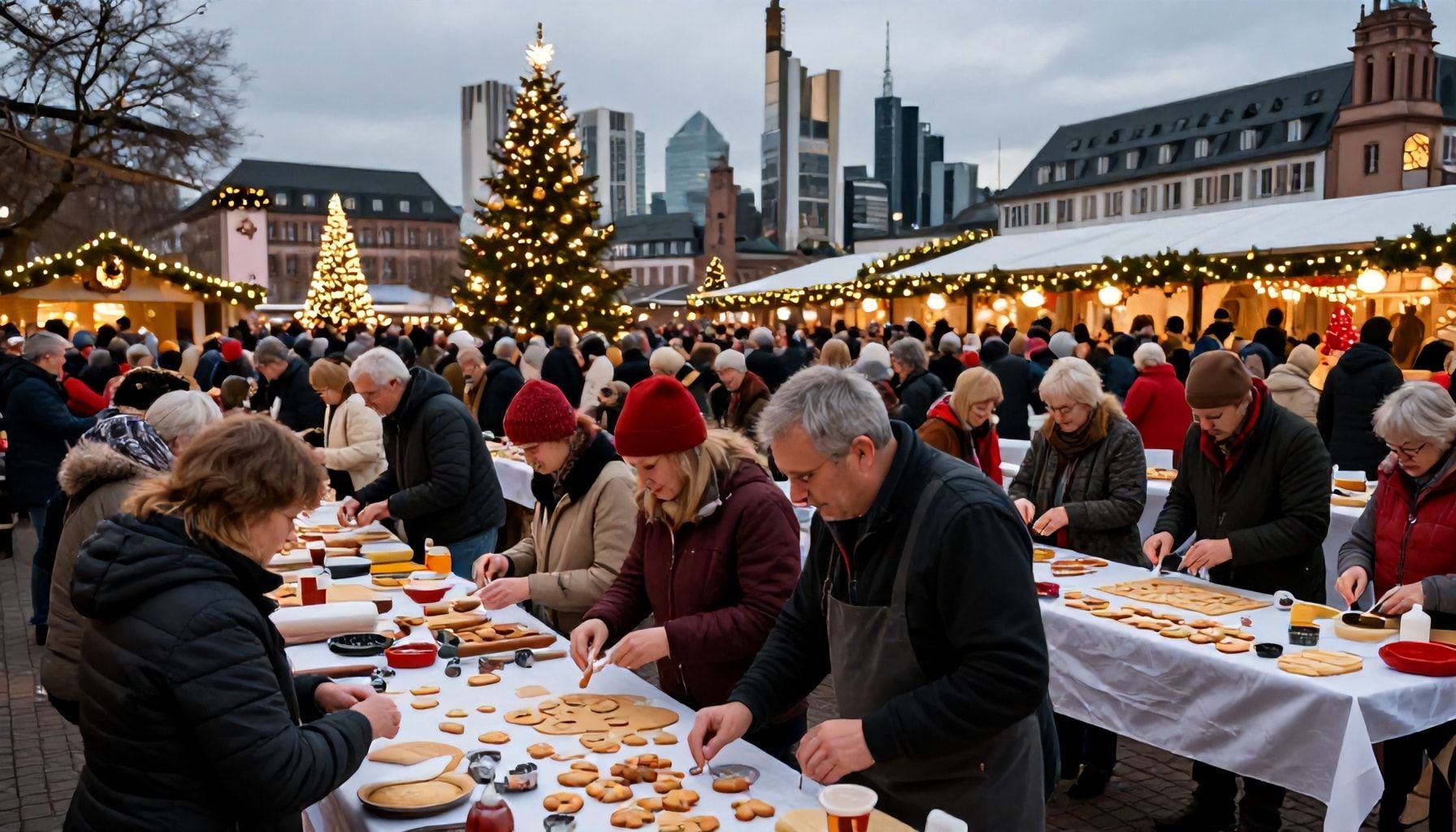 Die Frankfurter Plätzchen-Backaktion verwandelt die Stadt in ein winterliches Paradies. Über 12.000 Menschen aller Altersgruppen versammeln sich jährlich, um gemeinsam Weihnachtsgebäck zu backen. Kinder lachen, während sie Teig kneten, und Erwachsene tauschen Rezepte aus. Die Atmosphäre ist von Vorfreude und Gemeinschaft geprägt. Jeder findet hier sein persönliches Plätzchen-Glück.