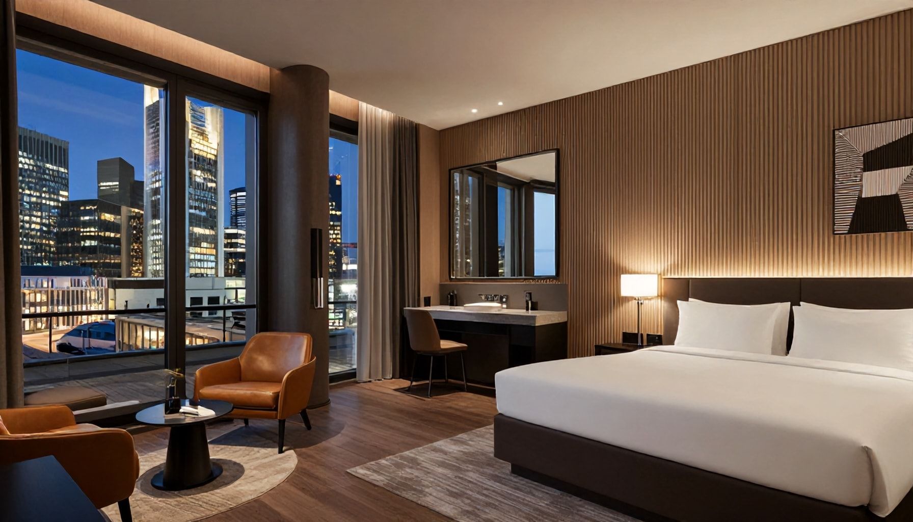 Laut einer Studie des Deutschen Hotel- und Gaststättenverbandes achten immer mehr Gäste auf die Qualität der Zimmerausstattung. Das neue Hotel in Frankfurt setzt genau hier an und überzeugt mit Details wie individuell einstellbarer Beleuchtung und Smart-Home-Technologie. Selbst die Badezimmer sind mit hochwertigen Annehmlichkeiten wie Regenwald-Duschen und freistehenden Badewannen ausgestattet.