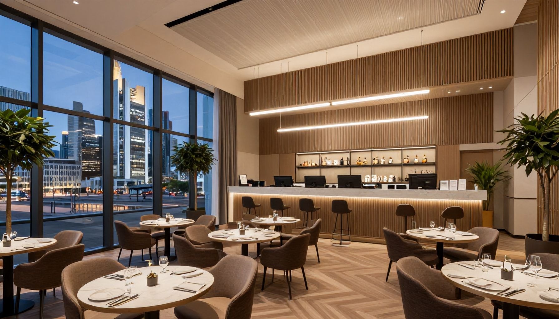 Die Mercure Residenz Frankfurt setzt mit ihrer kompakten, aber clever durchdachten Architektur neue Maßstäbe. Jedes der 250 neuen Zimmer und Suiten bietet trotz begrenzter Fläche eine überraschend geräumige Atmosphäre. Intelligente Raumkonzepte und multifunktionale Möbel maximieren den Komfort ohne Platz zu opfern.