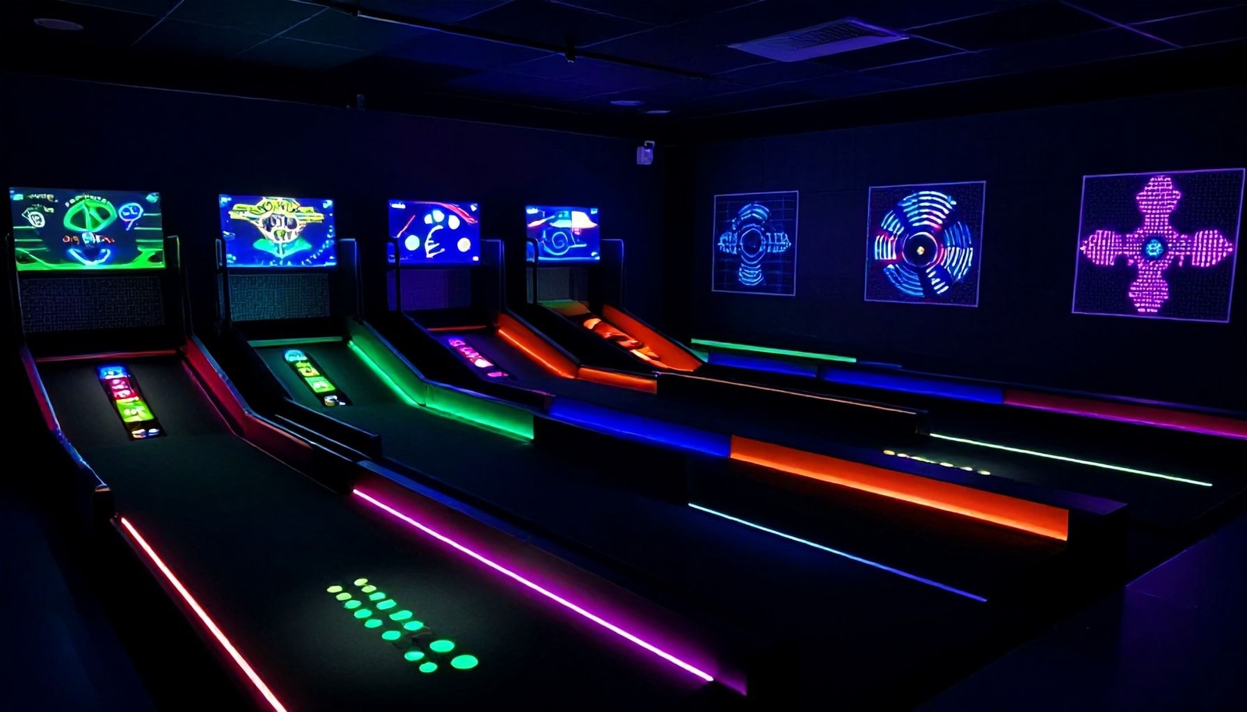 Die neue Schwarzlicht-Minigolf-Anlage in Frankfurt begeistert mit 18 kreativen Bahnen, die durch innovative Designs und interaktive Elemente überzeugen. Jede Bahn erzählt eine eigene Geschichte, von futuristischen Städten bis hin zu mystischen Wäldern. Besonders hervorzuheben ist die Bahn „Galaktische Reise“, die mit leuchtenden Sternen und Planeten eine außergewöhnliche Atmosphäre schafft. Die Kombination aus Schwarzlicht und fluoreszierenden Farben sorgt für ein einzigartiges Spielerlebnis.